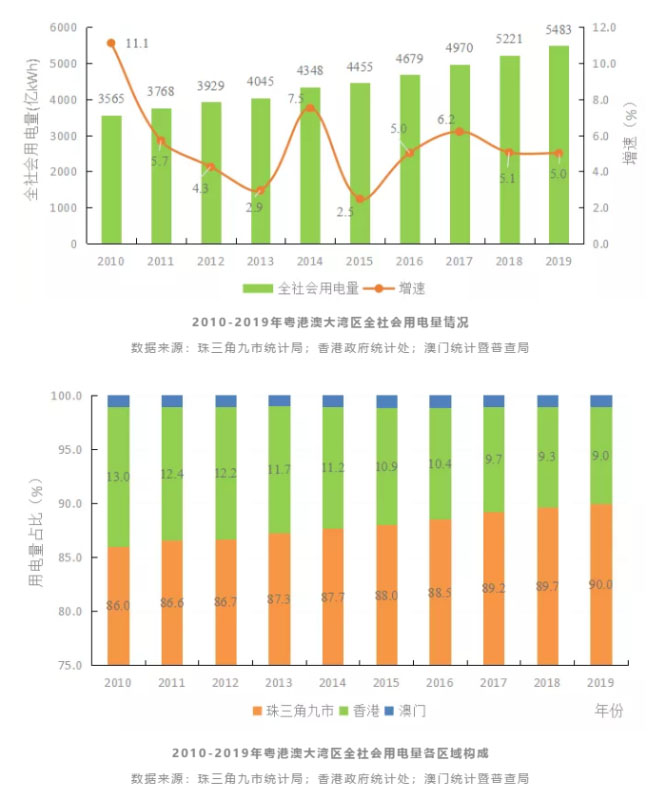 《粵港澳大灣區(qū)電力發(fā)展報告》指出,《粵港澳大灣區(qū)發(fā)展規(guī)劃綱要》出臺以后,粵港澳等地相繼出臺了支持粵港澳大灣區(qū)發(fā)展的系列政策,南方電網(wǎng)公司也發(fā)布了服務(wù)粵港澳大灣區(qū)發(fā)展的重點舉措,以此推動經(jīng)濟和電力發(fā)展。數(shù)據(jù)顯示,2019年,粵港澳大灣區(qū)地區(qū)生產(chǎn)總值(GDP)11.6萬億元,同比增長6.6%;全社會用電量5483億kWh,同比增長5.0%,其中,西電東送廣東電量達(dá)2022億kWh,同比增長5.1%。