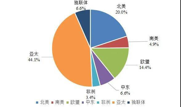 2019年全球各地區(qū)能源消費占比