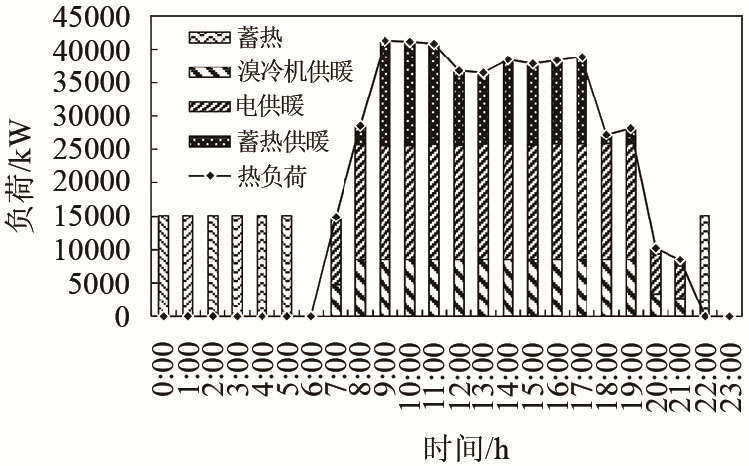 水蓄熱技術(shù)與傳統(tǒng)分布式能源系統(tǒng)耦合應(yīng)用方式與冰蓄冷技術(shù)耦合應(yīng)用類似,也為余熱蓄熱和低谷電蓄熱技術(shù),對應(yīng)的設(shè)計原理也如圖2所示。Wu等驗證分布式能源系統(tǒng)與余熱水蓄熱技術(shù)耦合應(yīng)用具有很好的經(jīng)濟(jì)性和環(huán)境友好性。Blarke等建立余熱水蓄熱技術(shù)與分布式能源系統(tǒng)耦合應(yīng)用系統(tǒng),得到了類似的結(jié)論。趙靜等研究了低谷電水蓄熱技術(shù)對傳統(tǒng)分布式能源系統(tǒng)的性能影響,發(fā)現(xiàn)低谷電水蓄熱技術(shù)不僅可以滿足熱負(fù)荷需求,如圖7所示,還可以增加系統(tǒng)運行時間,提高系統(tǒng)經(jīng)濟(jì)效益及能源利用效率。