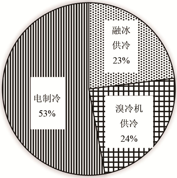 與分布式能源系統(tǒng)耦合應(yīng)用的蓄冷技術(shù)主要有水蓄冷和冰蓄冷技術(shù)。表4為兩種蓄冷技術(shù)的技術(shù)特點[26]。從表可以看出,冰蓄冷技術(shù)的作用機理為潛熱和顯熱的復(fù)合蓄冷方式,因此使用溫度范圍較水蓄冷有明顯擴大,蓄冷能力與體積蓄冷量也有顯著增加,且可提供溫度更低的冷量,進(jìn)而提高系統(tǒng)整體的相應(yīng)速度,但是冰蓄冷技術(shù)需要雙工況制冷機,制冷效率相對較低,也會增加項目的初投資。水蓄冷技術(shù)不僅可以使用制冷能效高的常規(guī)冷水機組,還可以實現(xiàn)蓄熱和蓄冷兩種用途,可進(jìn)一步降低項目的初投資。