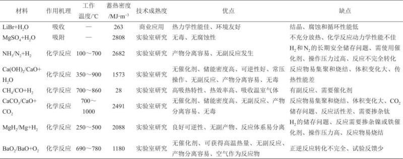 熱化學(xué)材料是利用可逆吸附、吸收、化學(xué)反應(yīng)進(jìn)行熱量的蓄積與釋放,具有溫域范圍廣、蓄熱密度大、長期蓄熱熱損失小等優(yōu)點。
