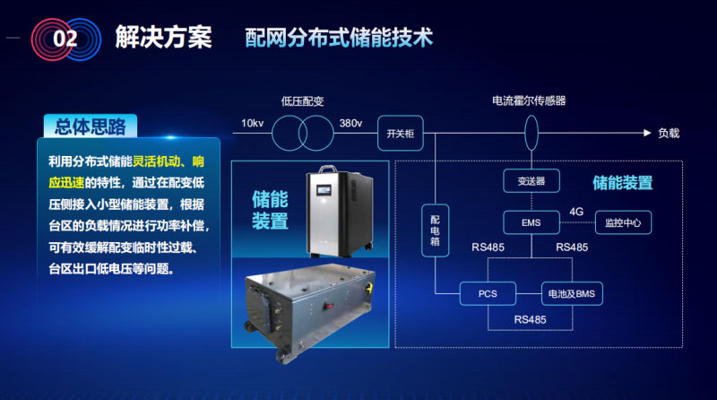 加大配電側(cè)分布式儲能技術(shù)的應(yīng)用,總體思路是利用分布式儲能靈活機動、響應(yīng)迅速的特點,通過在配變低渦側(cè)介入小型儲能裝置,根據(jù)臺區(qū)的負(fù)荷情況進(jìn)行功率補償,可以有效的環(huán)節(jié)配變以及臨時性過載,臺區(qū)出口低電壓等一系列的問題。