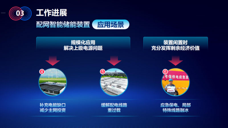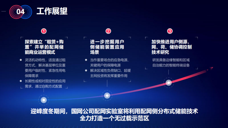 進(jìn)一步挖掘用戶側(cè)儲能裝置應(yīng)用場景,剛才提到的,特別是租賃模式下的裝備,在電網(wǎng)用戶這邊不租的時候,裝置也不能閑著,作為重要場合的應(yīng)急電源,作為保電的裝置,以及解決區(qū)域性負(fù)荷缺口,延緩主網(wǎng)投資發(fā)揮重要作用。