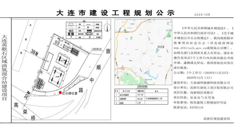 中國儲能網(wǎng)訊:近日,大連高新區(qū)規(guī)劃建設(shè)局公示了大連英歌石區(qū)域油氫混合站建設(shè)項(xiàng)目規(guī)劃,該項(xiàng)目位于旅順中路英歌石區(qū)域,建設(shè)單位是大連誠祥能源科技有限公司,設(shè)計(jì)單位是沈陽石油化工設(shè)計(jì)院有限公司,項(xiàng)目性質(zhì)為加油加氣站用地。站區(qū)內(nèi)用地面積為5274.47平方米,總建筑面積為899.32平方米,計(jì)入容積率建筑面積為511.52平方米,容積率為0.097。車站內(nèi)分別建有一處加氫氣罩棚和一處加油罩棚。