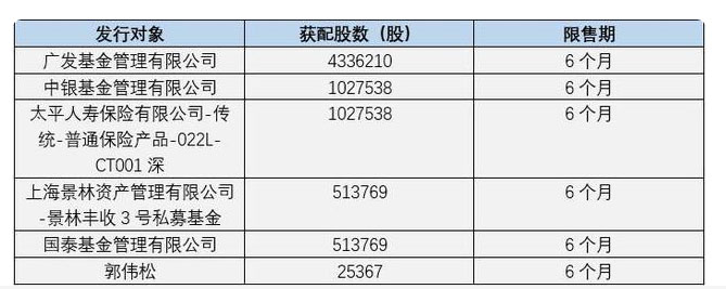 錦浪科技本次發(fā)行的聯(lián)席主承銷商為海通證券、中金公司,新增股份上市日期為2020年12月7日。錦浪科技將向6家發(fā)行對象發(fā)行共計744.42萬股,每股價格97.32元。發(fā)行對象的具體情況如下所示: