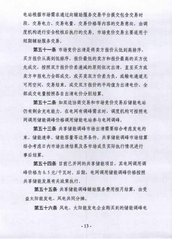 具體來說,當(dāng)新能源場站出現(xiàn)棄光限電時,首先由新能源場站與儲能電站進(jìn)行雙邊協(xié)調(diào),協(xié)調(diào)不成可在共享儲能交易平臺市場競價,進(jìn)行集中交易。如果儲能電站還有剩余容量,在出現(xiàn)棄風(fēng)棄光的時候,電網(wǎng)可以直接調(diào)用,每度電按0.7元執(zhí)行,產(chǎn)生的費(fèi)用由全省所有的發(fā)電企業(yè)均攤。