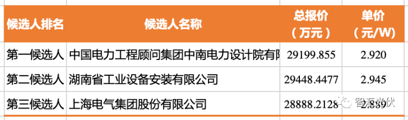 中標價格:23888萬元;折合單價:3.41元/W;