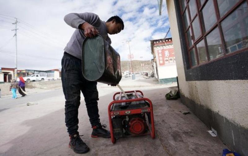 在西藏阿里地區(qū)普蘭縣巴嘎鄉(xiāng)崗莎村,一家飯店的工作人員準(zhǔn)備用發(fā)電機發(fā)電(11月29日攝)。新華社記者 詹彥 攝