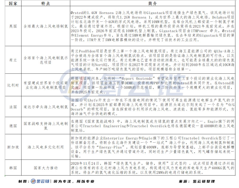 除了歐洲外,韓國(guó)、新加坡等國(guó)家也在積極布局海上風(fēng)電制氫項(xiàng)目,尋找綠氫生產(chǎn)新方向。