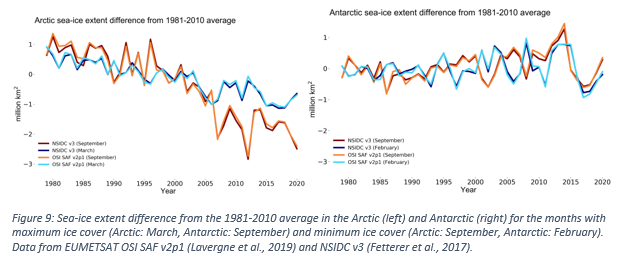 在北極,2020年出現(xiàn)異常高溫,超出平均氣溫3攝氏度以上,西伯利亞北部超出5度以上。10月的北極海冰達(dá)到了有記錄以來的最低位——而現(xiàn)在的重新結(jié)冰創(chuàng)下了有記錄以來的最慢速度。格陵蘭冰長期減少的趨勢仍在繼續(xù),平均每年減少冰塊2780億噸。永久凍土正在融化,因此釋放出強(qiáng)有力的溫室氣體——甲烷。