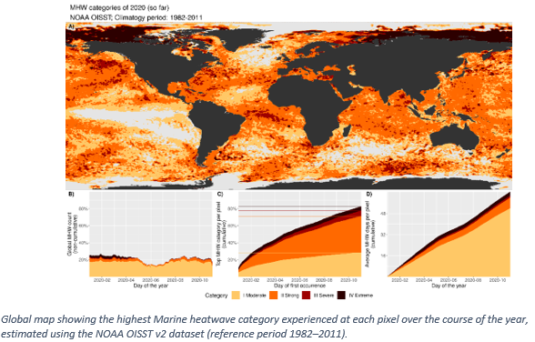 這份名為“2020年全球氣候狀況”的臨時報告指出,2020年,海洋熱量處在創(chuàng)紀(jì)錄的水平,全球80%以上的海洋均在某些時段經(jīng)歷了海洋熱浪,對已因吸收二氧化碳而遭受更多酸性水域的海洋生態(tài)系統(tǒng)產(chǎn)生了廣泛影響。