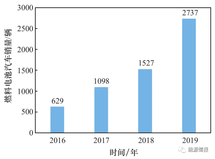 圖1我國歷年燃料電池汽車銷量情況