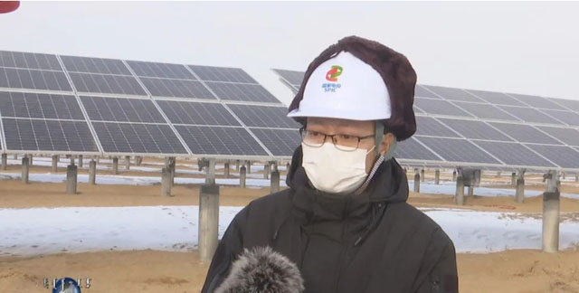 在我們西北角,現(xiàn)在目前已經(jīng)準(zhǔn)備在這做草方格治沙、固沙,然后所有的光伏板下面都還要撒草籽,還要間隔的種一些臨間草、樹木,就是到投產(chǎn)兩年到三年之后,這個(gè)現(xiàn)有的是沙漠狀態(tài)的話,到后期我們就會(huì)全部是沙漠里頭的綠洲,每年碳排放量能夠減少三萬(wàn)五千多噸的碳排放。