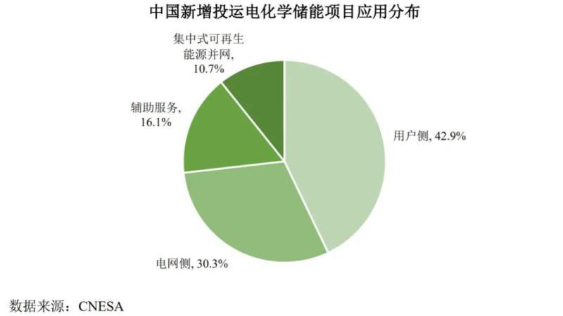 仍根據(jù)CNESA數(shù)據(jù),截至2018年,從中國累計(jì)投運(yùn)的電化學(xué)儲能項(xiàng)目的應(yīng)用分布上看,用戶側(cè)領(lǐng)域的裝機(jī)規(guī)模最大,為470.4MW,占比46.5%;電網(wǎng)側(cè)和集中式可再生能源并網(wǎng)分列二、三位,分別占比 21.4%和 17.8%。2018年,從中國新增投運(yùn)的電化學(xué)儲能項(xiàng)目的應(yīng)用分布上看,依然是用戶側(cè)領(lǐng)域的裝機(jī)規(guī)模最大,為 293.3MW,占比 42.9%,同比增長 312.5%,電網(wǎng)側(cè)、輔助服務(wù) 和集中式可再生能源并網(wǎng)分列二至四位。