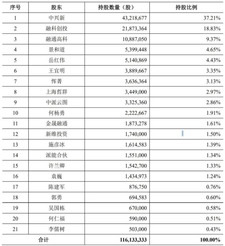 根據(jù)上海派能招股意向書披露,中興新通訊有限公司(以下簡稱為“中興新”)持有公司 37.21%的股份,為公司控股股東(見下面表格)。