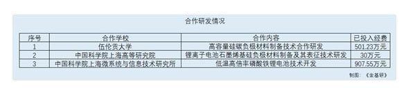 與中國(guó)科學(xué)院上海微系統(tǒng)與信息技術(shù)研究所合作低溫高倍率磷酸鐵鋰電池技術(shù)開(kāi)發(fā),目前已完成,已投入經(jīng)費(fèi)907.55萬(wàn)元。