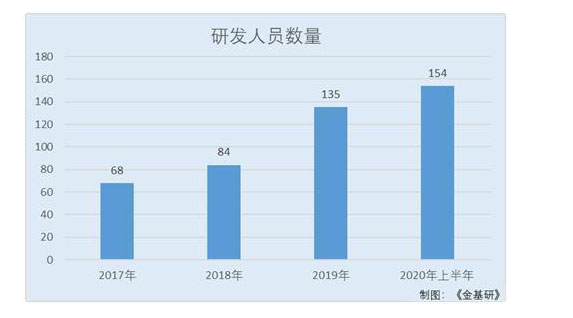2017-2019年及2020年上半年,派能科技的研發(fā)人員數(shù)量分別為68人、84人、135人、154人,占其員工總數(shù)比例分別為18.38%、20%、24.41%、21.91%。