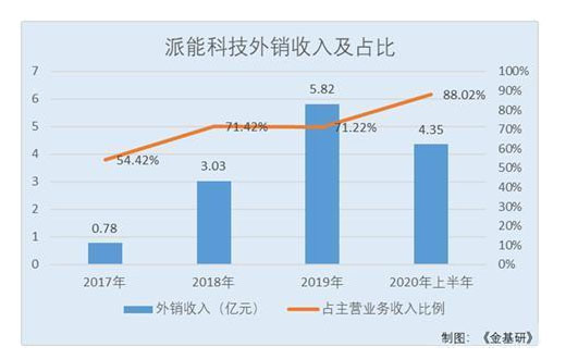 2017-2019年及2020年上半年,派能科技外銷(xiāo)收入分別為0.78億元、3.03億元、5.82億元和4.35億元,占主營(yíng)業(yè)務(wù)收入比重分別為54.42%、71.42%、71.22%和88.02%,實(shí)現(xiàn)大幅提升。