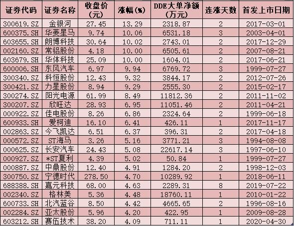 漲幅在4%以上的新能源汽車概念股一覽