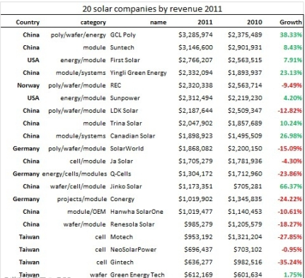 2011年光伏企業(yè)營(yíng)收排列表