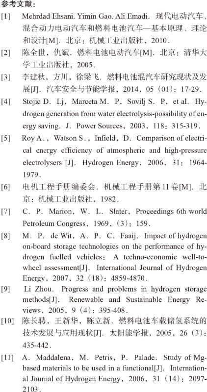 氫能汽車是一種典型的新能源汽車,其以氫為主要能量。一般內(nèi)燃機通常采用注入柴油或汽油的方法,而氫能汽車則改為采用H2。氫燃料電池則是用燃料電池和電動車取代了一般的引擎。氫燃料電池借助電化學反應將燃料(H2和O2)直接轉變成電能的一種原電池[1],該過程不涉及熱機做功和燃燒,不受卡諾循環(huán)的限制[2],轉化效率高。