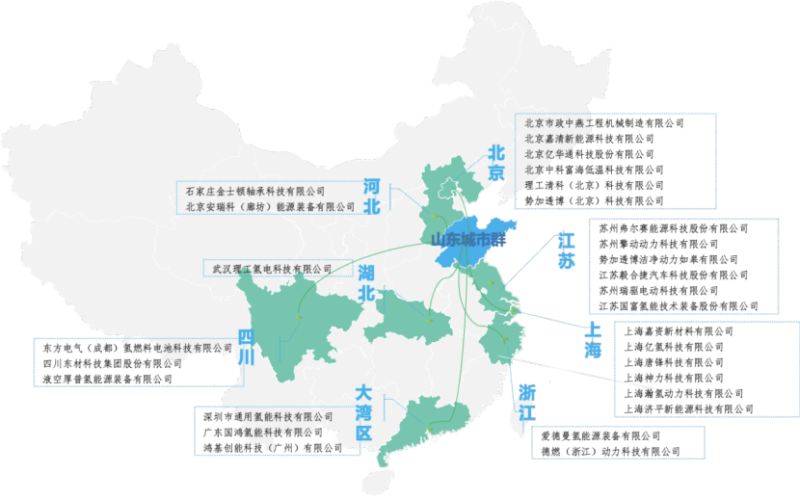 目前,山東省已集聚了一批氫能產(chǎn)業(yè)重點(diǎn)企業(yè)和科研院所,具備了制氫、儲(chǔ)運(yùn)、燃料電池質(zhì)子交換膜、空壓機(jī)、氫氣循環(huán)泵、電堆、系統(tǒng)等核心零部件和整車(chē)制造及新能源汽車(chē)檢測(cè)等全產(chǎn)業(yè)鏈資源。