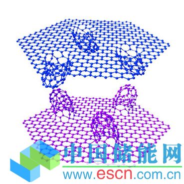 圖為柱撐石墨烯結(jié)構(gòu)示意圖,該圖表示:當兩層石墨烯接近時,石墨烯片上的突出結(jié)構(gòu)起到柱撐功能,從而防止此類石墨烯自發(fā)堆疊。