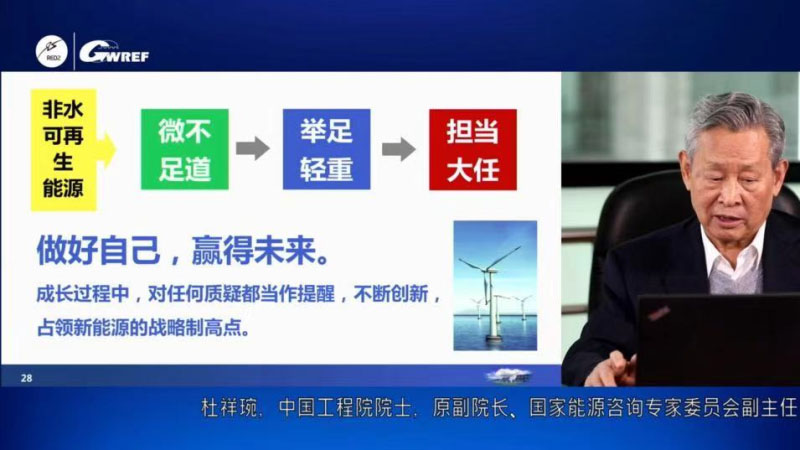 中國(guó)工程院原副院長(zhǎng)、工程院院士、國(guó)家能源咨詢專家委員會(huì)副主任杜祥琬從能源轉(zhuǎn)型和碳中和角度發(fā)表了觀點(diǎn)。據(jù)了解,杜祥琬院士主持開展了我國(guó)第一個(gè)可再生能源戰(zhàn)略研究,最早提出了可再生能源在國(guó)民經(jīng)濟(jì)建設(shè)中將起到舉足輕重的作用這一觀點(diǎn)。