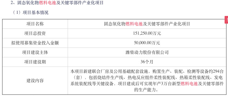 濰柴動(dòng)力表示,公司在新能源動(dòng)力總成領(lǐng)域已全面完成氫燃料電池和固態(tài)氧化物燃料電池的核心技術(shù)布局,關(guān)鍵技術(shù)指標(biāo)在商用車和能源電力領(lǐng)域全球領(lǐng)先。本次募集資金將用于加速燃料電池產(chǎn)業(yè)鏈的研發(fā)能力和制造能力提升,圍繞新能源汽車“三縱三橫”的技術(shù)路線,建立差異化的技術(shù)優(yōu)勢;圍繞 2030 年“碳達(dá)峰”和 2060 年“碳中和”目標(biāo),建成全球領(lǐng)先燃料電池產(chǎn)業(yè)鏈基地,引領(lǐng)全球新能源行業(yè)發(fā)展。