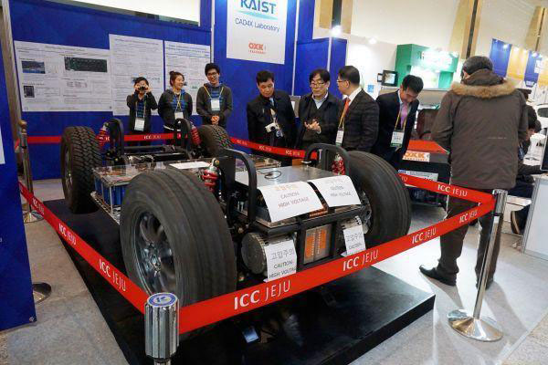 資料圖:在韓國(guó)濟(jì)州島舉行的第二屆國(guó)際電動(dòng)汽車(chē)展上,人們?cè)陧n國(guó)科學(xué)技術(shù)院研發(fā)的電動(dòng)車(chē)展區(qū)參觀。(新華社)