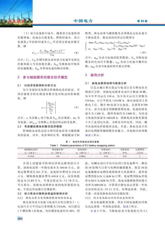 李捷, 楊冰. 電動汽車換電站參與電力市場輔助服務(wù)的經(jīng)濟(jì)效益研究[J]. 中國電力, 2020, 53(12): 258-262, 269.