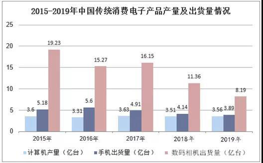 2019年計算機產(chǎn)量為3.56億臺,手機出貨量為3.89億臺,數(shù)碼相機出貨量為8.19億臺。2015-2019年計算機產(chǎn)量整體上趨于穩(wěn)定,但是手機出貨量以及數(shù)碼相機出貨量都存在著不同程度的下降。總體來看我國的傳統(tǒng)電子產(chǎn)品消費已處于較為成熟的市場階段,整體呈現(xiàn)放緩收縮的趨勢,對于電池的需求不會有很大變動。