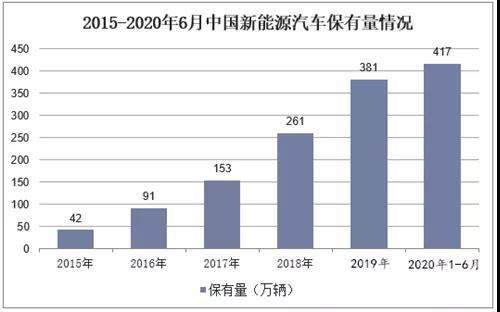 截至2020年6月,我國新能源汽車保有量417萬輛,相比2019年的381萬輛,新能源汽車保有量增加了36萬輛。