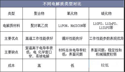中國儲能網(wǎng)訊:固態(tài)電池相較于傳統(tǒng)鋰電池,有著更為優(yōu)異的性能,固態(tài)鋰電池的安全性極高,無自燃、爆炸風(fēng)險;能量密度高,有望解決傳統(tǒng)鋰電池的續(xù)航里程問題;可實現(xiàn)快充。目前固態(tài)鋰電池的電解質(zhì)有三種:聚合物電解質(zhì)、硫化物電解質(zhì)和氧化物電解質(zhì),有的已經(jīng)在小規(guī)模使用或接近商業(yè)化,有的還在完善過程中。
