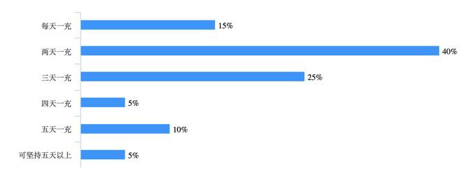 從充電次數(shù)來看,有80%的車主在夏天時,每次充電會間隔三天或以上,但這一數(shù)據(jù)在冬季時下降到了45%。在冬季,每天充電和隔天充電的車主人數(shù)分別增加了5%和30%。