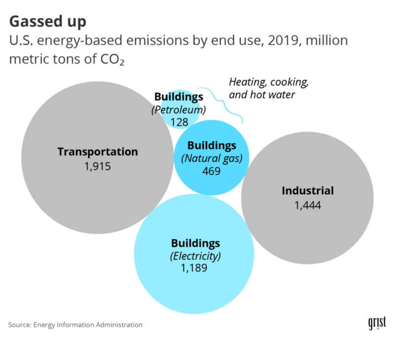 美國(guó)能源相關(guān)排放中,建筑物排放占比僅次于交通領(lǐng)域