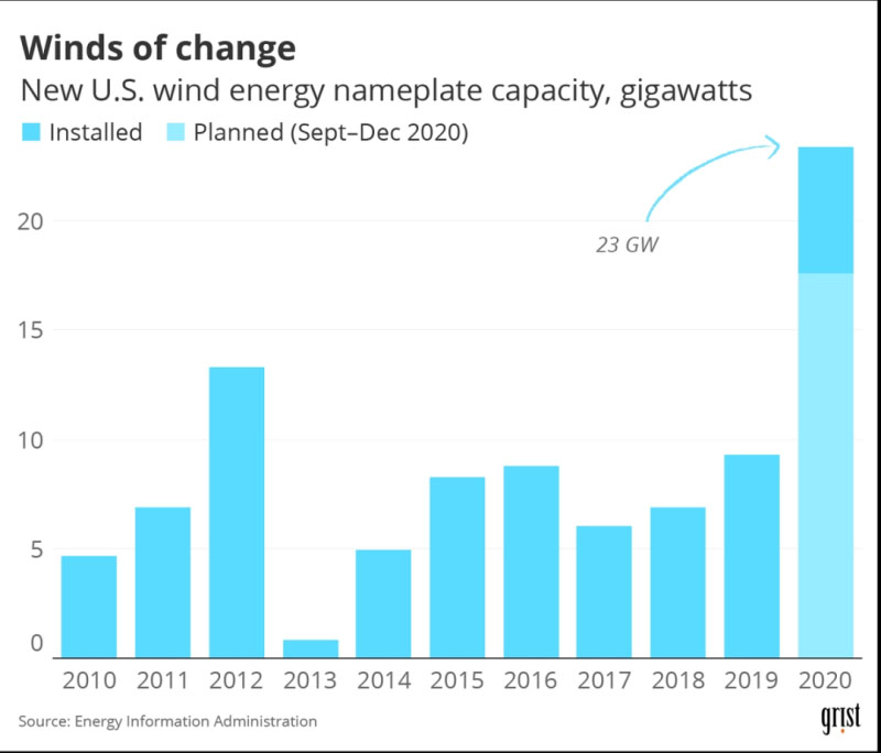 美國(guó)2020年新增風(fēng)力發(fā)電23GW