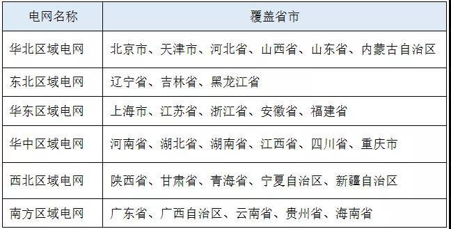 對應區(qū)域電網(wǎng)所轄省市如下表所示:
