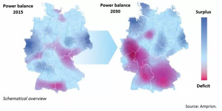 按照Amprion電網(wǎng)公司針對(duì)2015年與2030年情景所做電力平衡,未來(lái)十年后德國(guó)南部電力緊缺,北部電力盈余(南缺北豐現(xiàn)象),然而,目前連接德國(guó)南北部35,000公里的直流輸電線并不能完全承擔(dān)將北部的剩余發(fā)電傳至南部的任務(wù)。特別是在大風(fēng)天,北部的現(xiàn)貨電力市場(chǎng)中有大量廉價(jià)的可再生能源參與競(jìng)價(jià),大大壓低電力批發(fā)價(jià)格,鼓勵(lì)南部用戶購(gòu)電,然而現(xiàn)有的輸電線卻無(wú)法將這些風(fēng)能全部輸送給客戶。因此,雖然北部發(fā)電中心可以在一定程度上通過(guò)靈活性調(diào)節(jié)和出口避免浪費(fèi)風(fēng)電,但南部電網(wǎng)運(yùn)營(yíng)商仍需調(diào)度價(jià)格較高的常規(guī)能源機(jī)組進(jìn)行發(fā)電,從而提高了饋電成本。此外,由于各個(gè)北歐國(guó)家都在擴(kuò)大風(fēng)光發(fā)電能力,并且所有市場(chǎng)的用戶行為都表現(xiàn)出很大的相似性,因此調(diào)整進(jìn)出口以滿足德國(guó)電力市場(chǎng)穩(wěn)定性的能力將會(huì)越來(lái)越有限。這就使得南北輸電線的建設(shè)更有必要。