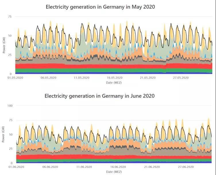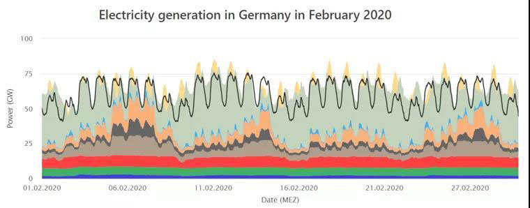 2020年的第一個(gè)季度,德國(guó)總電力消費(fèi)量中來(lái)自可再生能源的電量占比達(dá)到了52%,是第一個(gè)完整的季度中可再生能源貢獻(xiàn)了該國(guó)超過(guò)一半的電力需求。2月甚至創(chuàng)下了單月61.8%的新高。相比之下,2019年第一季度的占比為44%。如此高比例的接入主要與2、3月創(chuàng)紀(jì)錄的風(fēng)電和較高的太陽(yáng)能發(fā)電,以及新冠病毒大流行造成的總電力需求下降有關(guān)。本文將首先研究展示德國(guó)2020年以來(lái)各個(gè)月電力系統(tǒng)的負(fù)荷曲線,然后對(duì)德國(guó)電力系統(tǒng)能消納如此高比例的可再生能源的原因進(jìn)行解讀分析。在各國(guó)碳中和的大背景下,了解當(dāng)前德國(guó)電力系統(tǒng)電源結(jié)構(gòu),研判其能源轉(zhuǎn)型的過(guò)去、現(xiàn)在和未來(lái),將是十分有必要的。