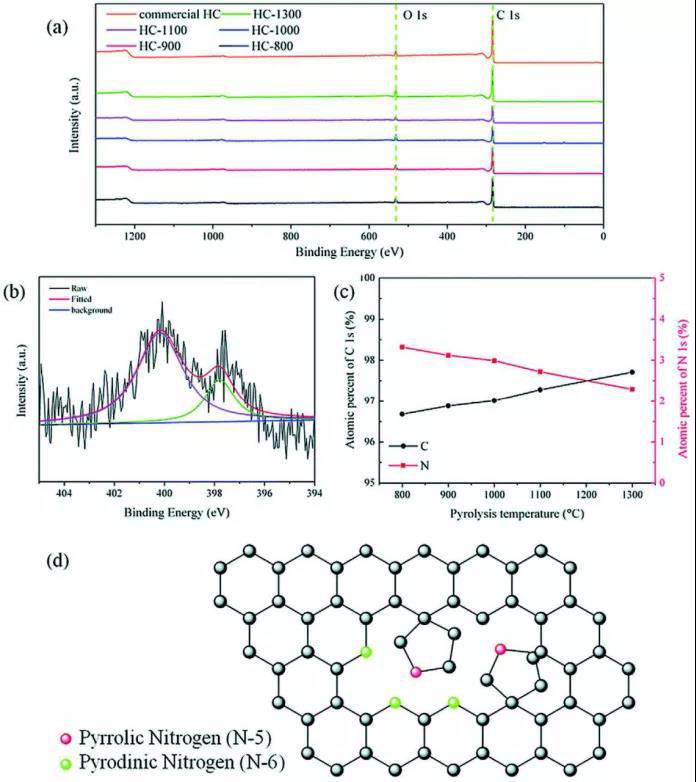 由于電池使用后的經(jīng)濟(jì)價(jià)值較低,隔膜的回收利用常常被忽視;然而,完整的生命周期分析需要考慮這些成分。由于隔膜主要由聚丙烯和聚乙烯形式的聚烯烴膜組成,因此,如果將電池技術(shù)視為對(duì)環(huán)境無(wú)害的,則其固有的不可生物降解性便需要回收或再利用策略。將隔膜轉(zhuǎn)化為碳作為電極材料是一種有效的價(jià)值化方式,但應(yīng)該指出的是,加熱過(guò)程不可避免地會(huì)產(chǎn)生CO2。從廢舊隔膜中分離出來(lái)的多孔硬質(zhì)碳具有作為電極材料的潛力。Wang等人利用聚酰亞胺隔膜合成了氮摻雜多孔硬碳,在碳邊緣同時(shí)顯示吡啶氮和吡咯氮原子(圖10)。當(dāng)組裝到LIBs中時(shí),這些隔膜衍生的碳材料可實(shí)現(xiàn)接近100%的庫(kù)侖效率,在20 mA g?1下的可逆Li+存儲(chǔ)容量為380 mAh g?1,并且在超過(guò)1000次循環(huán)中,每圈循環(huán)容量衰減率為0.009%。除碳化反應(yīng)外,還發(fā)現(xiàn),如果將隔膜從廢舊LIBs中適當(dāng)移除,可重復(fù)用于LIBs。使用LiMn2O4正極和鋰金屬負(fù)極的半電池中,可重復(fù)使用的隔膜顯示的容量幾乎相等,為123 mAh g?1。
