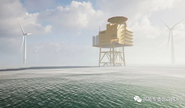 AquaVentus項(xiàng)目渲染圖。預(yù)計(jì)到2035年將有10GW的綠氫在海上生產(chǎn)后再輸送到陸上。(圖片來源:RWE)