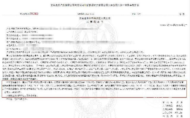 ▲2020年10月12日,滁州市南譙區(qū)法院稱裁定:因訴訟期間嘉安汽車變更請求,已移送滁州中院審理。圖片來源/中國裁判文書網(wǎng)
