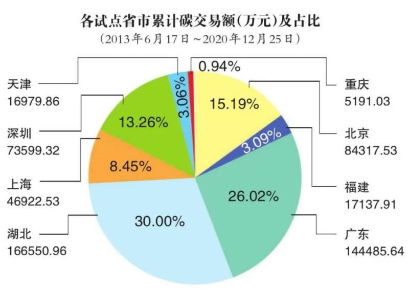 2011年,國家發(fā)展改革委設(shè)立碳配額交易試點區(qū)域,北京、上海、深圳、重慶、廣東、天津、湖北7個省市成為試點區(qū)域。其中深圳的碳排放交易所在2013年率先建立,其余交易試點也在2014年年中之前相繼建立。2016年,福建碳市場啟動,并發(fā)布了《福建省碳排放權(quán)交易市場調(diào)節(jié)實施細則(試行)》。2017年12月,《全國碳排放權(quán)交易市場建設(shè)方案(發(fā)電行業(yè))》發(fā)布。