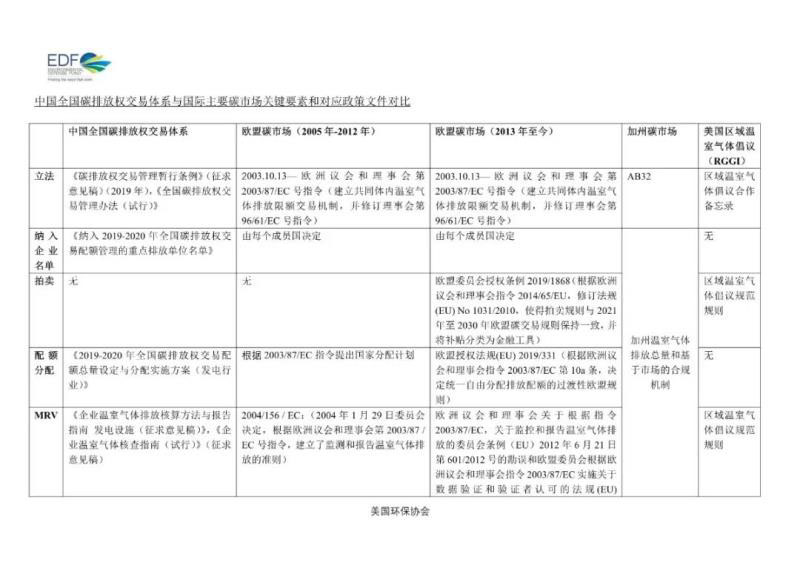 中國(guó)全國(guó)碳排放權(quán)交易體系與國(guó)際主要碳市場(chǎng)關(guān)鍵要素和對(duì)應(yīng)政策文件對(duì)比: