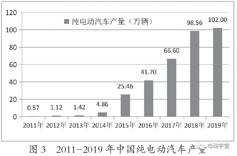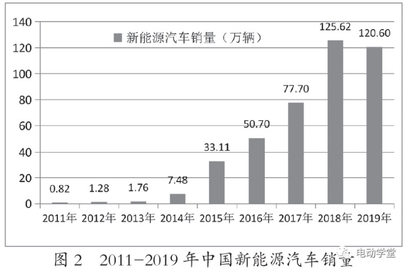 隨著國(guó)家對(duì)新能源汽車發(fā)展的大力支持和鼓勵(lì),我國(guó)新能源汽車產(chǎn)量和新能源汽車銷量呈爆發(fā)式增長(zhǎng)。截至2019年底,我國(guó)新能源汽車?yán)塾?jì)保有量超過(guò)390萬(wàn)輛,占全球市場(chǎng)保有量的50%以上。2011-2019年中國(guó)新能源汽車產(chǎn)銷量情況如圖1和圖2所示。