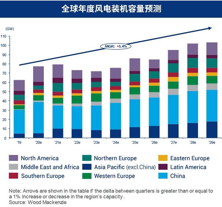 不不不,根據(jù)伍德麥肯茲發(fā)布的《全球風(fēng)電市場(chǎng)展望更新:2020年第四季度》,未來十年將成為可再生能源飛速發(fā)展的階段。預(yù)計(jì)2020-2029年間,全球?qū)⑿略?49GW風(fēng)電容量。