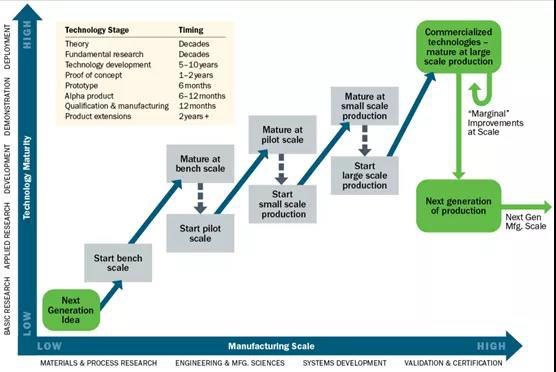 圖5 技術(shù)成熟度和制造規(guī)模途徑