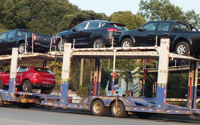 通過(guò)專(zhuān)用運(yùn)輸車(chē)運(yùn)往各地銷(xiāo)售的汽車(chē)。
