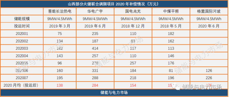 山西、京津唐地區(qū)部分火儲聯合調頻項目2020年的收益情況如下。